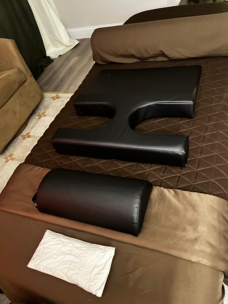 We also offer a buckwheat-filled face pillow with a fresh organic cotton cover, a neck bolster, breast bolster and round bolster for the legs. The air is kept fresh with a silent air-purifier. Not sponsored, just intentionally picked.